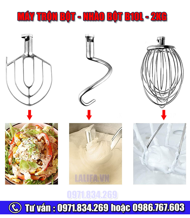 Khoang chứa: Tô trộn inox 10L (2Kg)